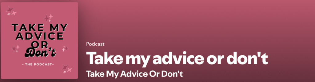 Take My Advice or Don’t is our hit Mother and Daughter Podcast with life advice, tips, stories, fun and much more!